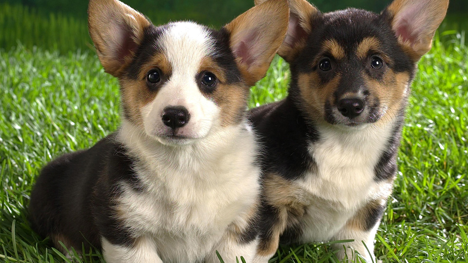 小狗,耳朵,两只,绿草地,凝望着你,动物壁纸