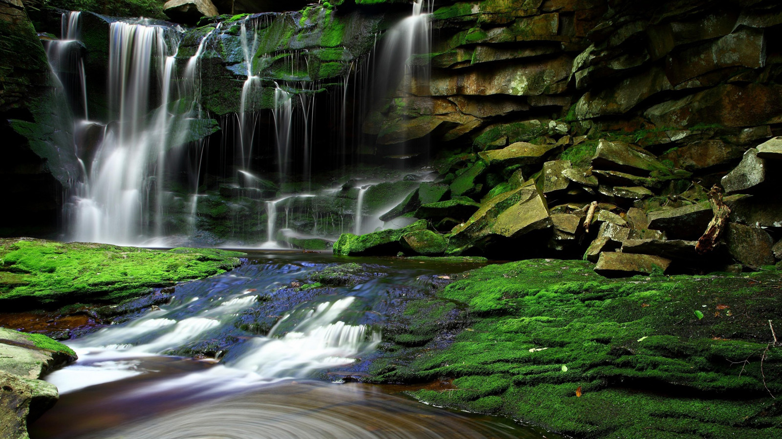 岩石,瀑布,流水,小溪流水,石头,苔藓,自然森林风景桌面壁纸