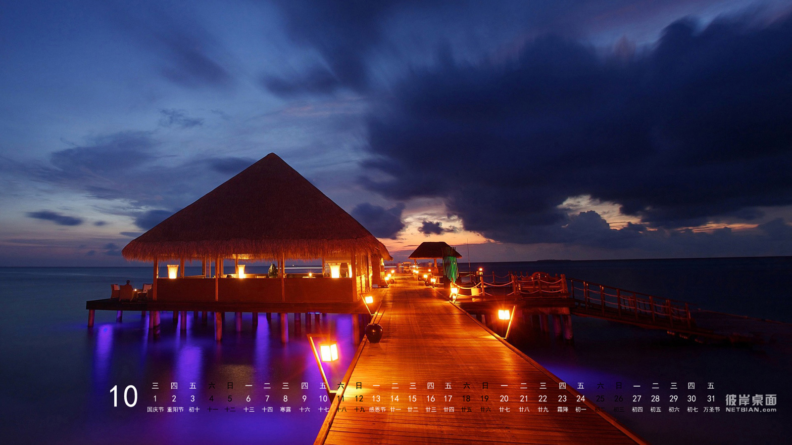 彼岸桌面2014年10月日历桌面壁纸 美丽浪漫海景之夜