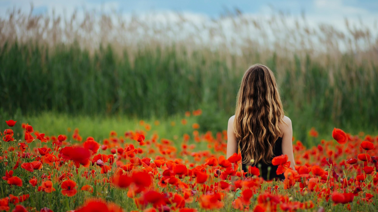 罂粟花,花海,女孩的照片,唯美风景壁纸