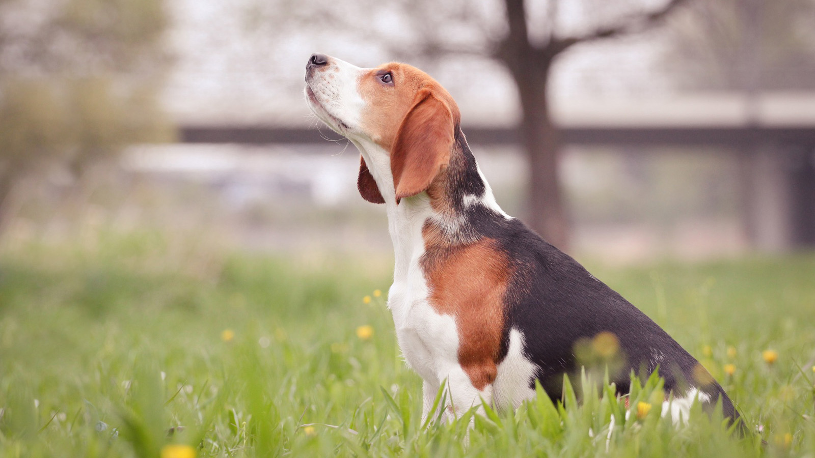 狗狗,凝望,蒲公英,草,树,草地,桌面壁纸