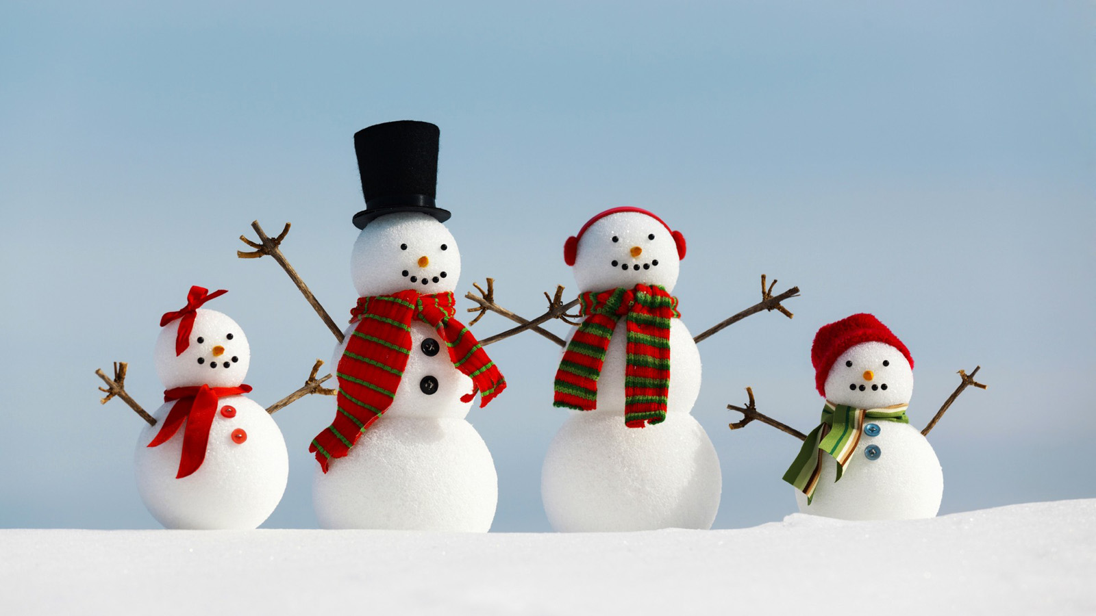 四个小雪人,圣诞快乐,新年快乐,冬天,雪,桌面壁纸