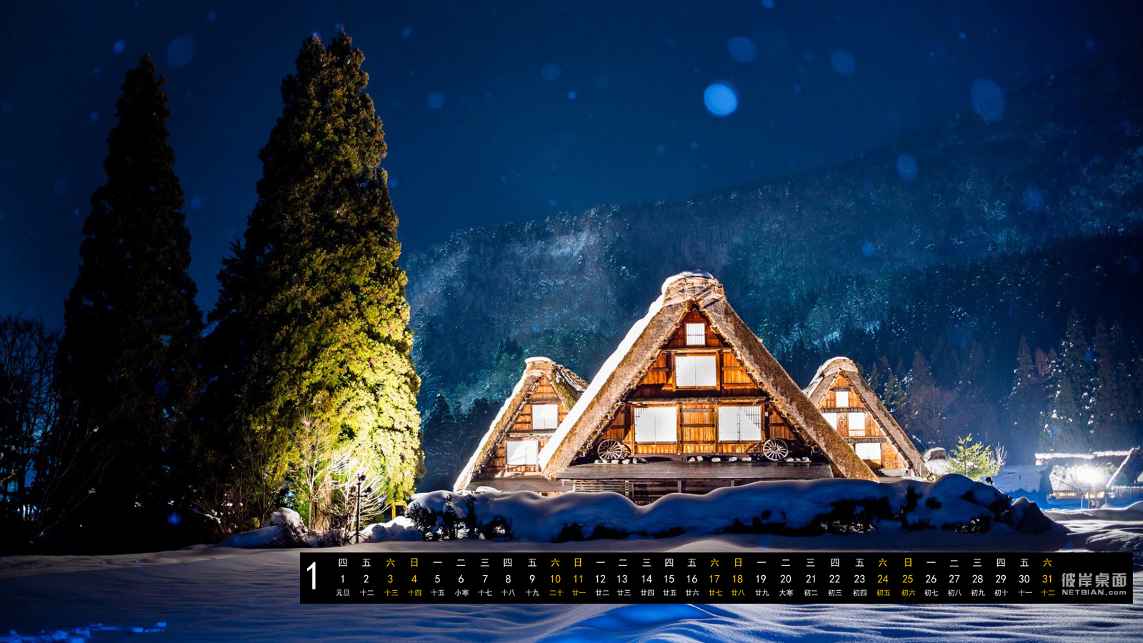 彼岸2015年1月日历桌面壁纸,美丽的冬天夜景