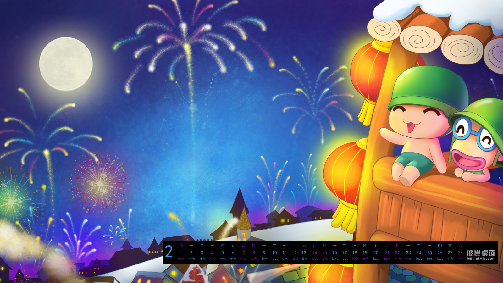 彼岸2015年2月日历桌面壁纸,炮炮兵过新年