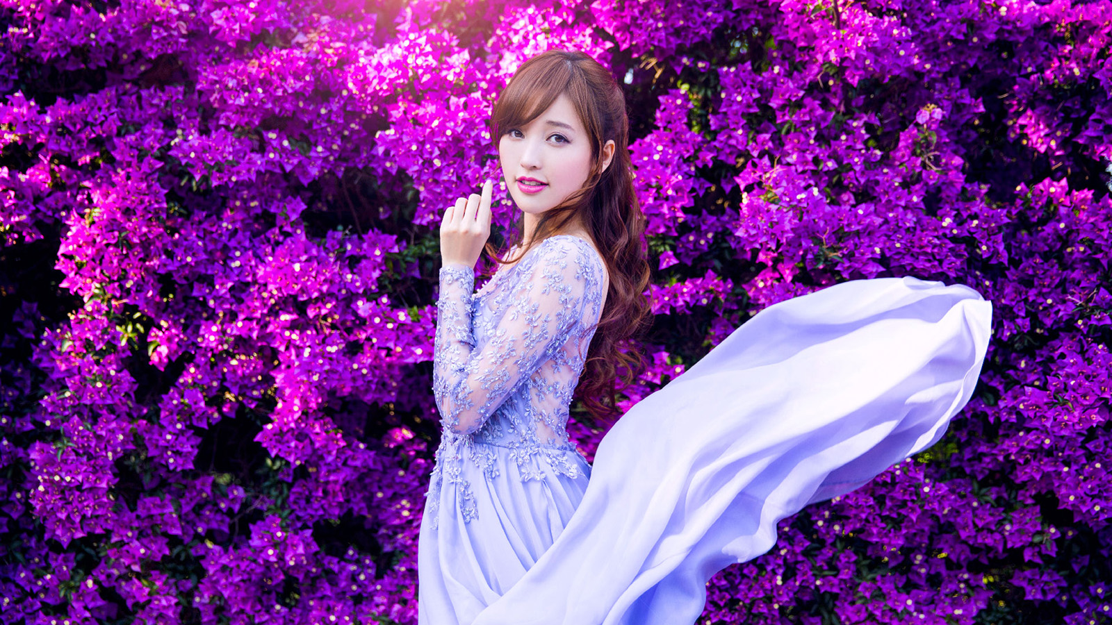 金莎,美女写真,紫色花海,金莎高清桌面壁纸