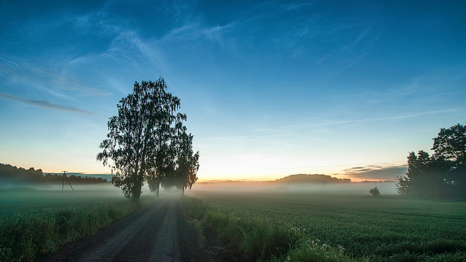 道路,牧场,草,雾,树,风景桌面壁纸