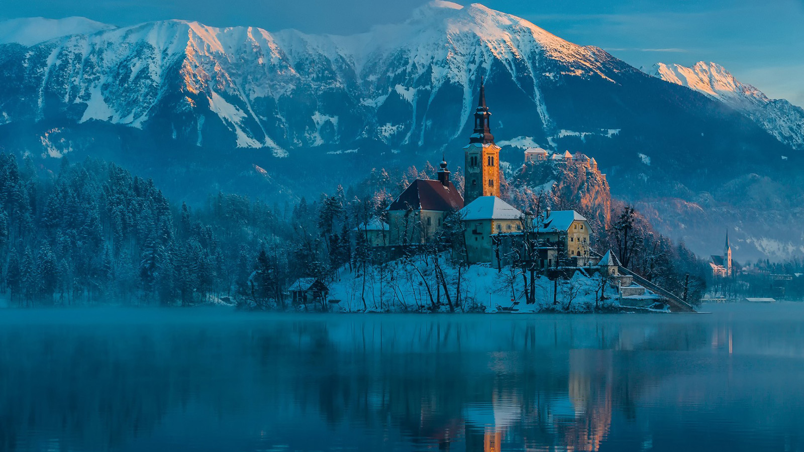 斯洛文尼亚 布莱德湖 冬天 美丽的风景桌面壁纸
