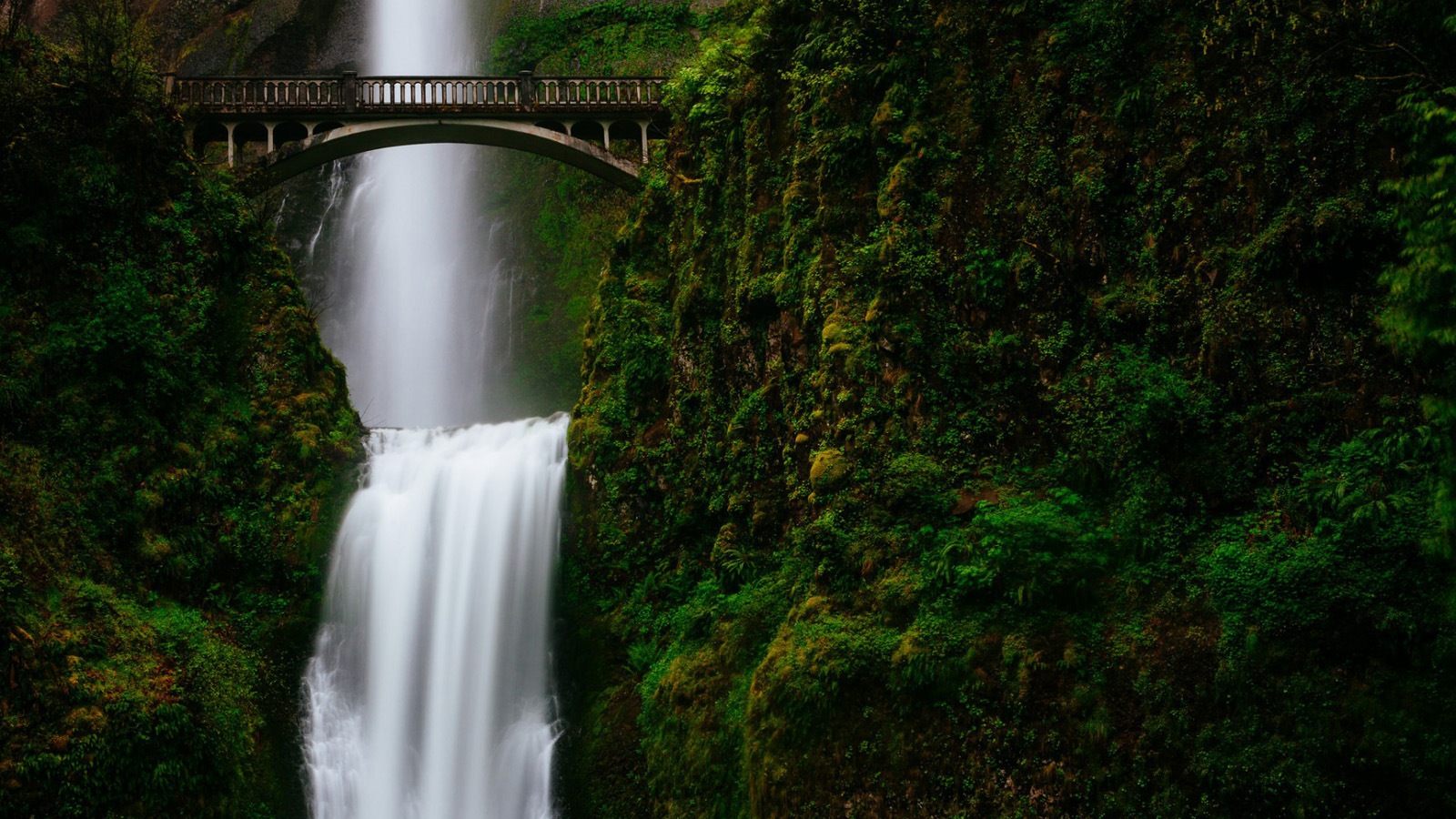 山,绿色的植物,苔藓,溪流,瀑布,桥,美景,自然,风景桌面壁纸