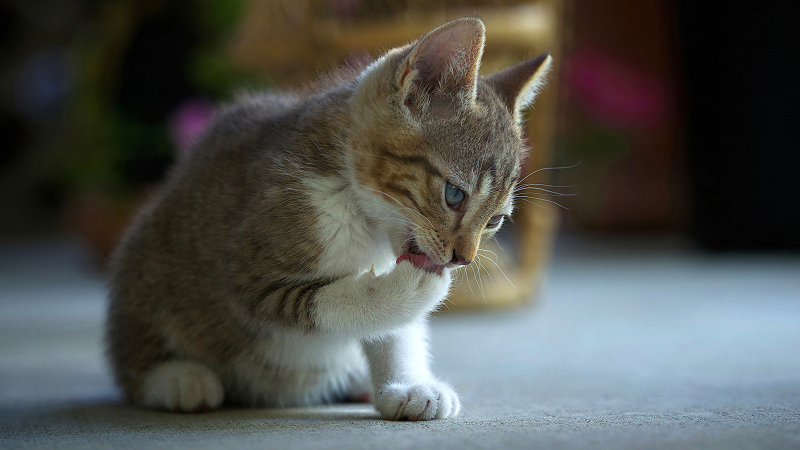 小猫,灰色和白色,舔小脚,小手,洗澡,梳理心情,有爱,壁纸