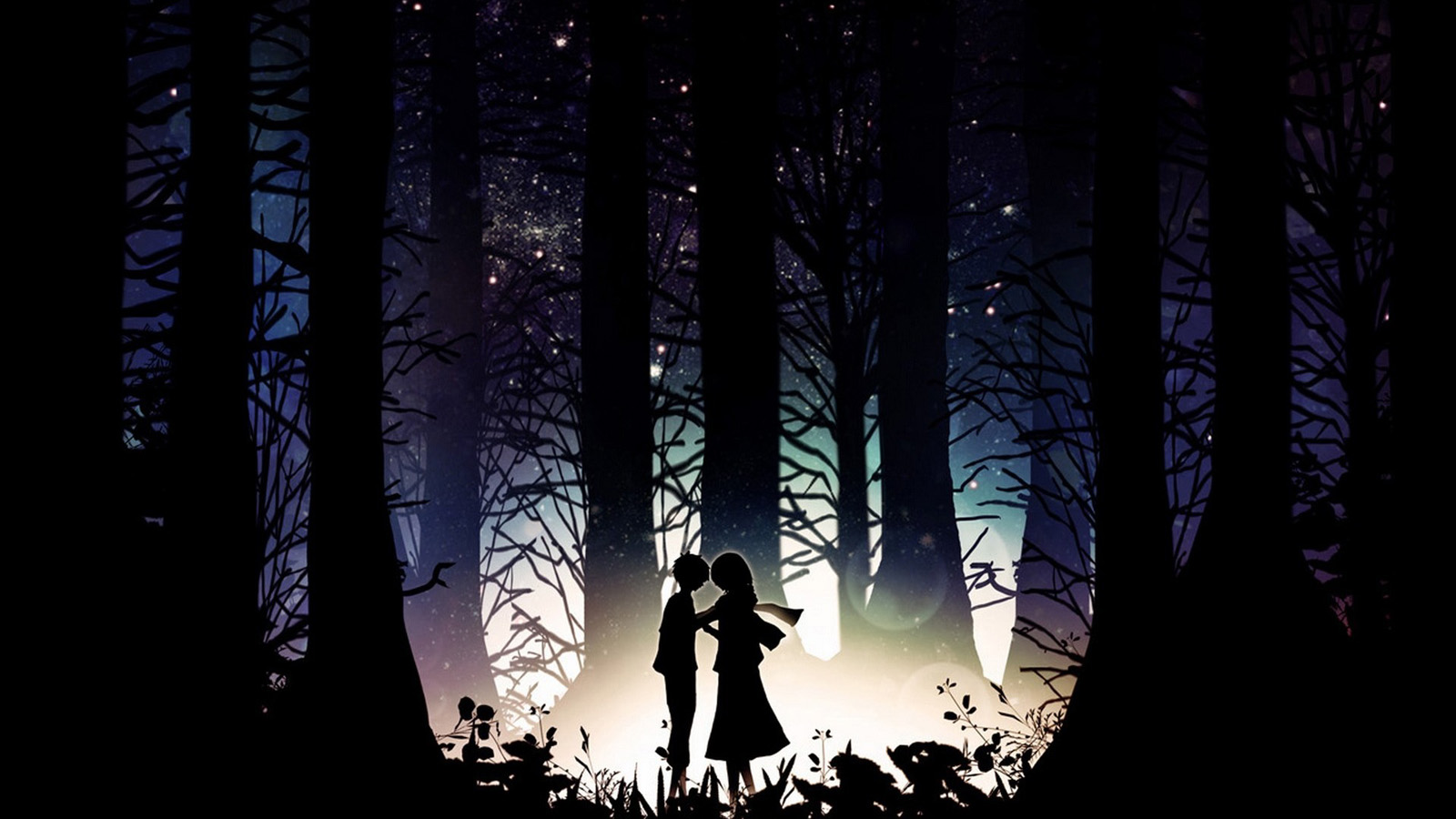 森林,夜晚,树林,星星,恋人,约会,凝望,意境,梦境壁纸
