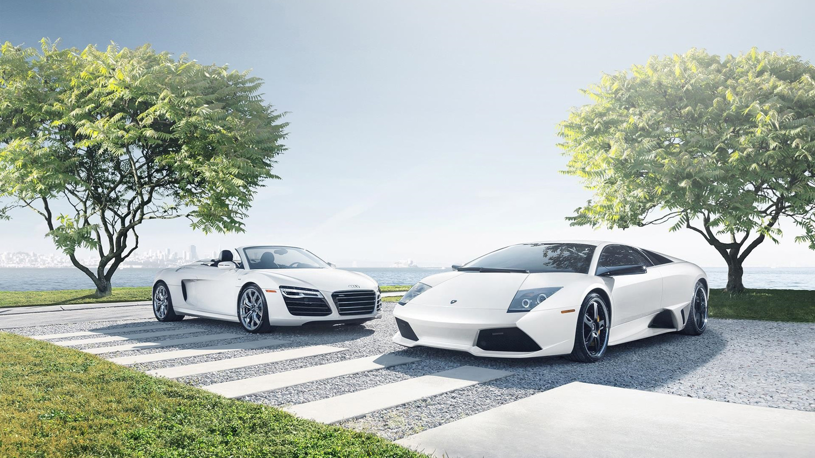 奥迪R8蜘蛛,兰博基尼,murcielago,蝙蝠- 4,跑车,风景照片,壁纸