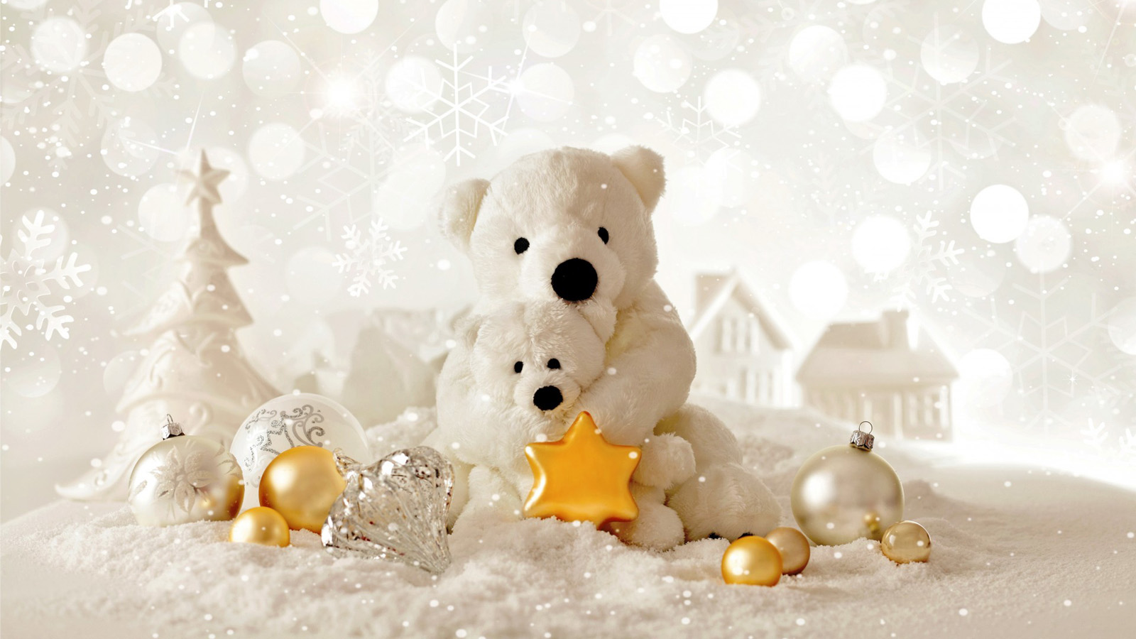 圣诞节,装饰,玩具熊,冬天,雪,可爱圣诞节壁纸