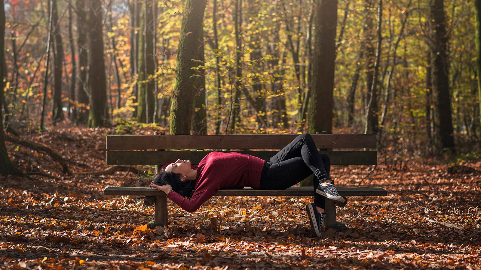 运动员美女,秋季,树林,板凳,睡姿,运动鞋,唯美风景壁纸