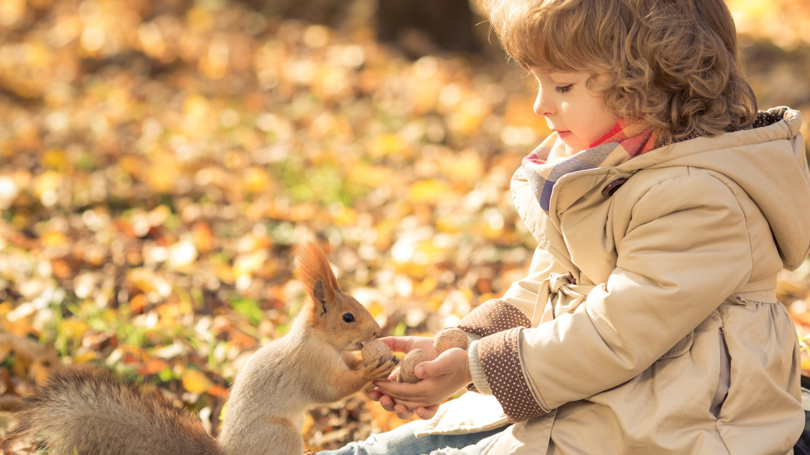 小女孩,松鼠,果实,好朋友,桌面壁纸