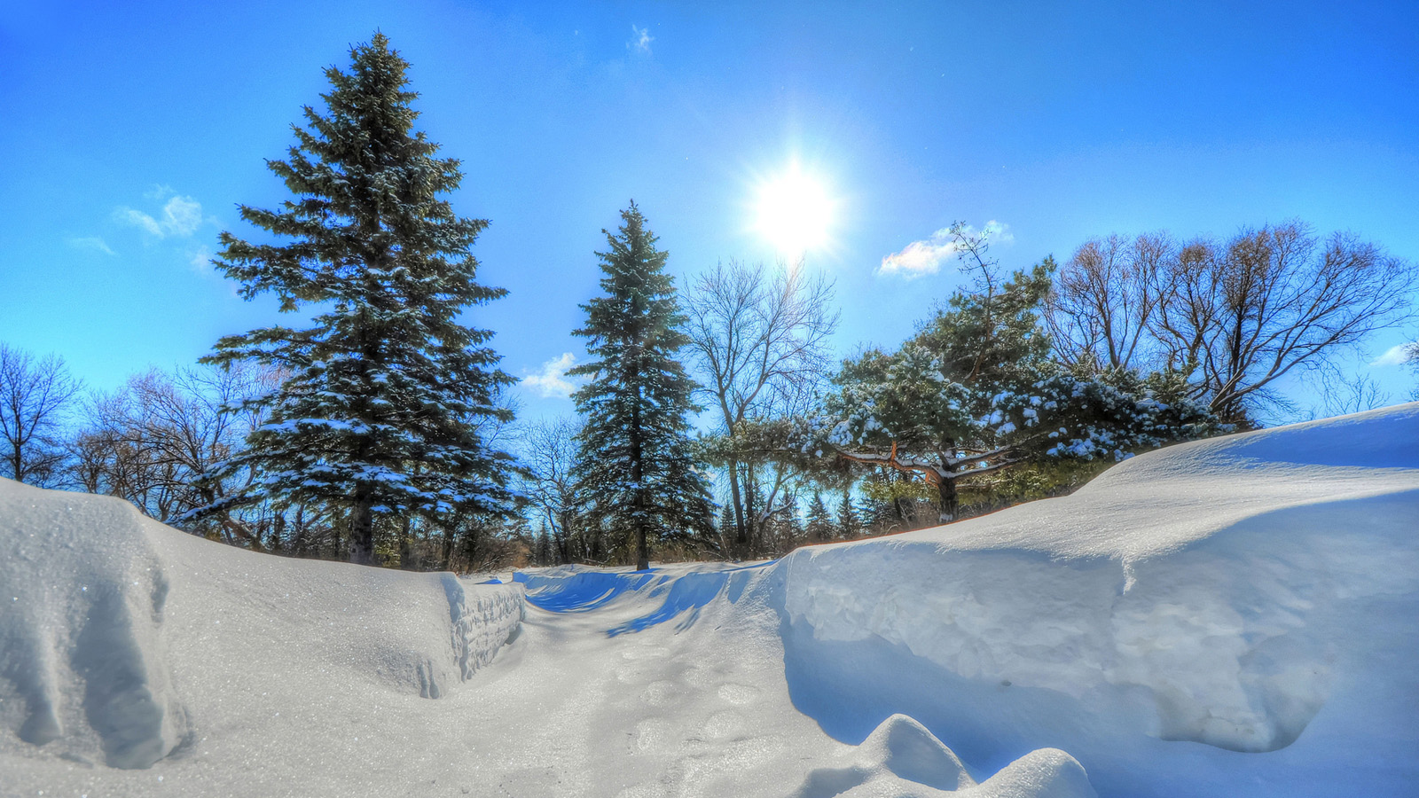 天空,太阳,冬季,树木,雪,风景桌面壁纸