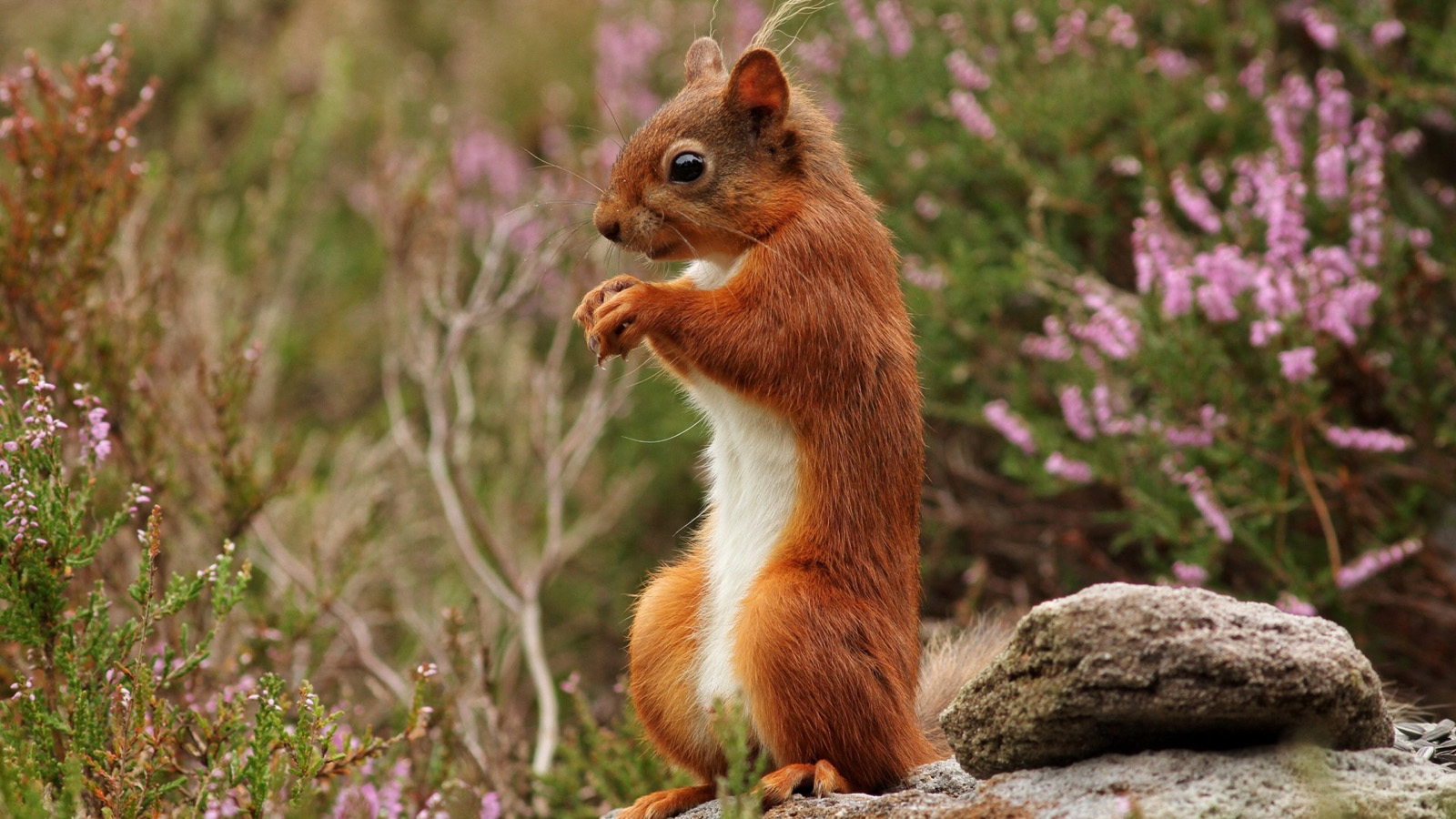 林中红色松鼠,可爱站姿,岩石,红色松鼠桌面壁纸