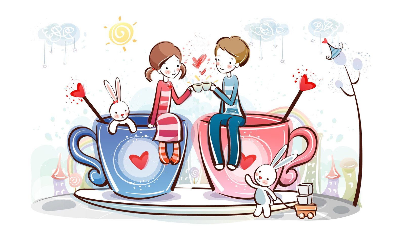 可爱小情侣杯桌面壁纸