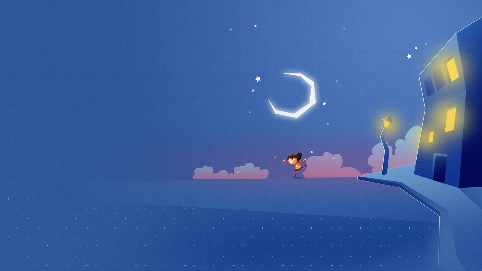 路灯下的小女孩桌面壁纸