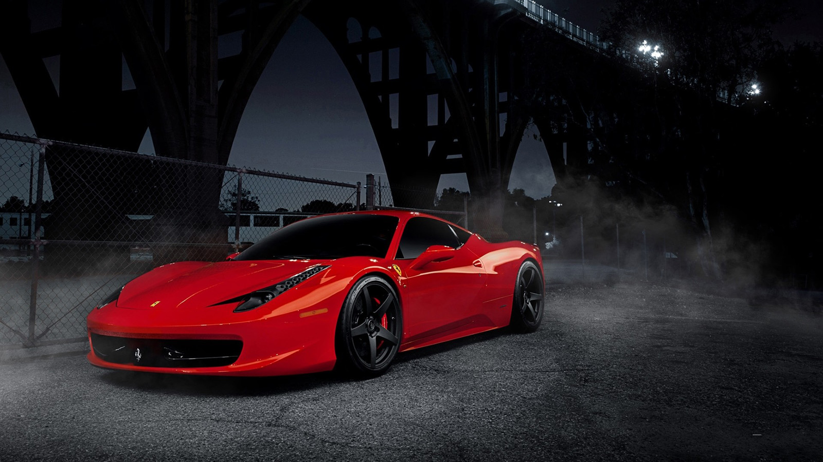 红色法拉利458,桥,夜景桌面壁纸