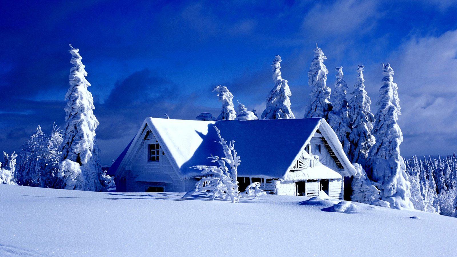 冬天,雪,云杉,树,灌木,天空桌面壁纸