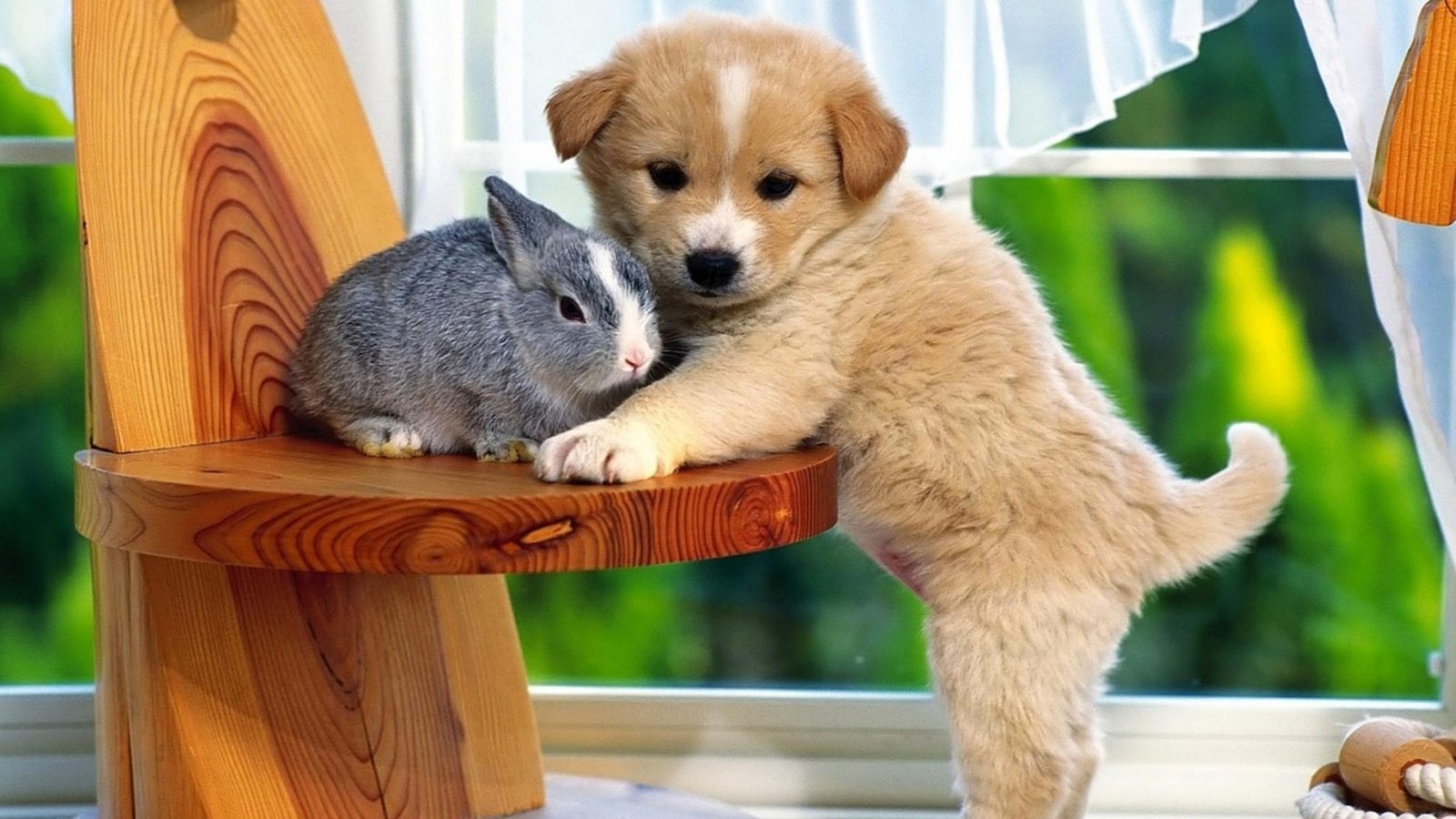 可爱的小狗,小兔,椅子桌面壁纸