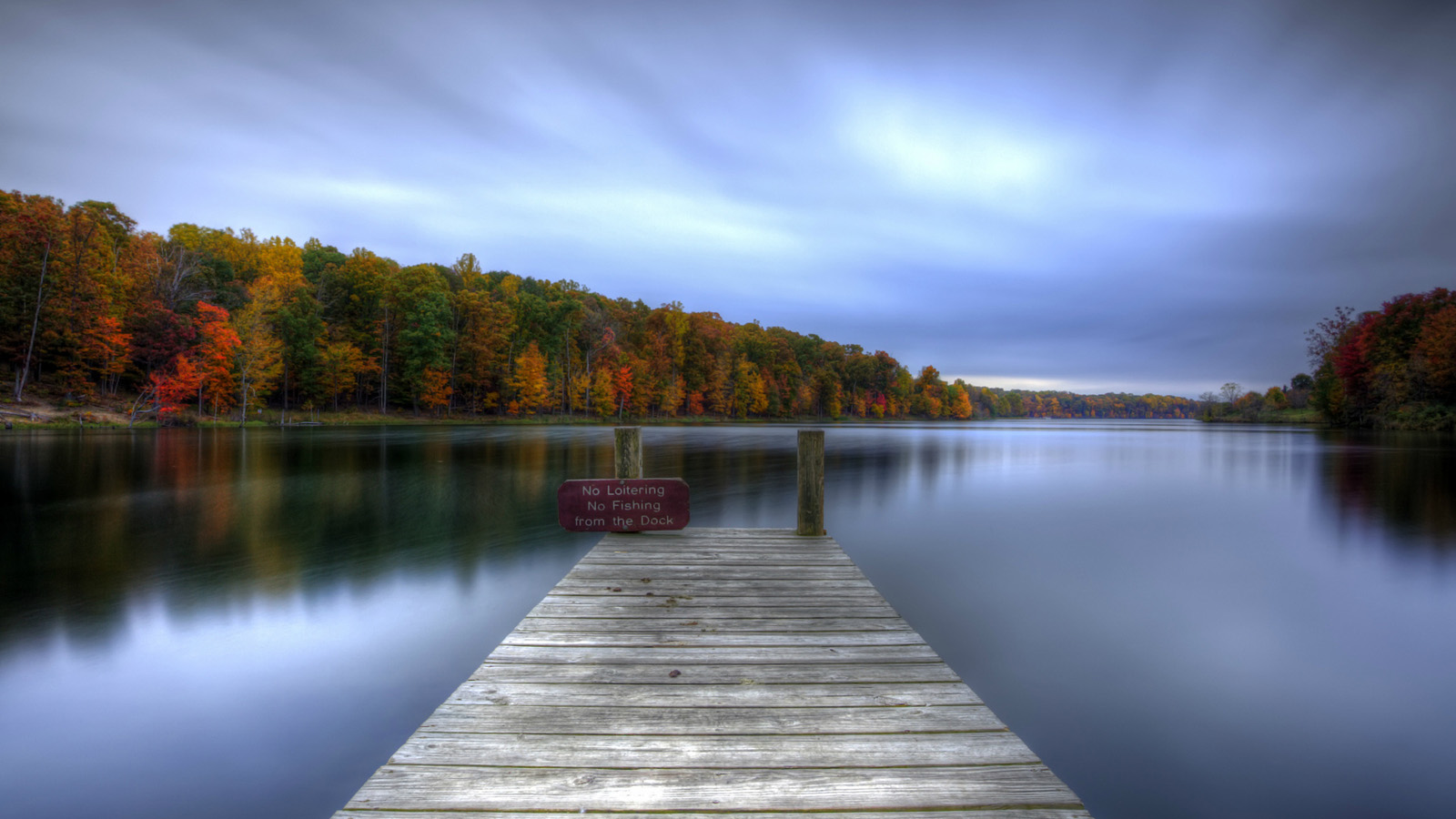 秋天,水面,湖,木制板桥梁,自然风景桌面壁纸