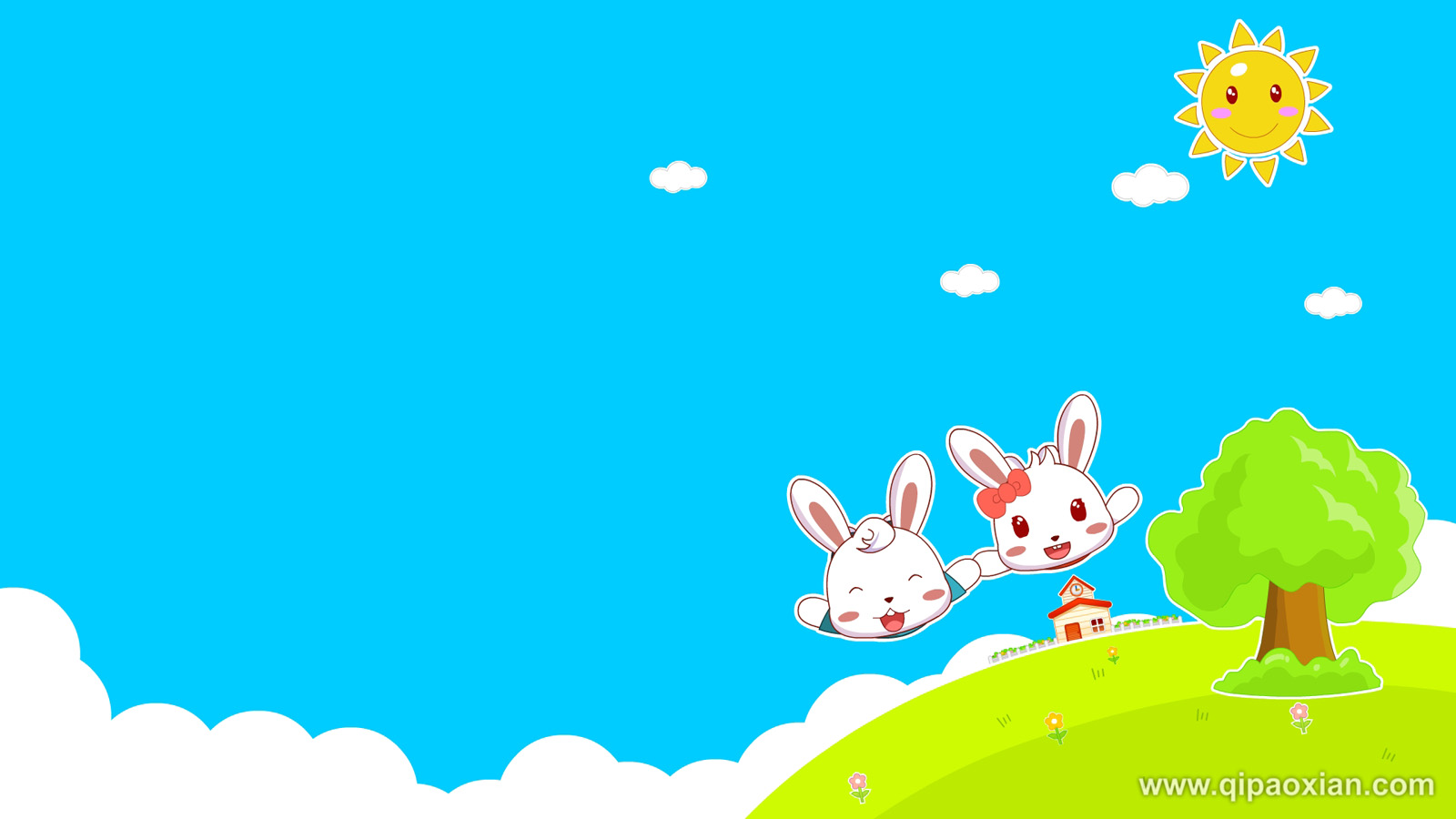 飞翔的兔子 兔小贝、兔小美桌面壁纸
