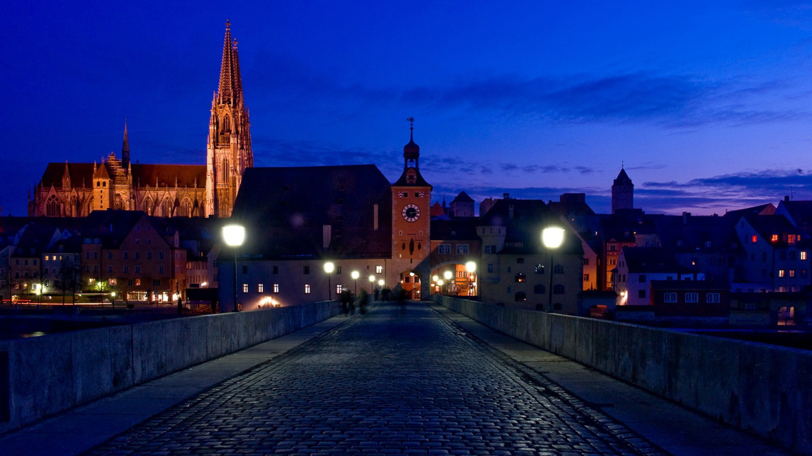 雷根斯堡,晚上,城市桌面壁纸