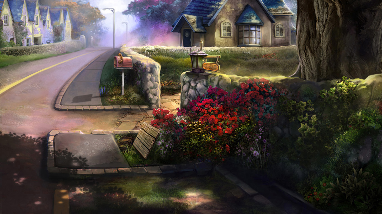 手绘,风景,公路,别墅房子,树,鲜花壁纸