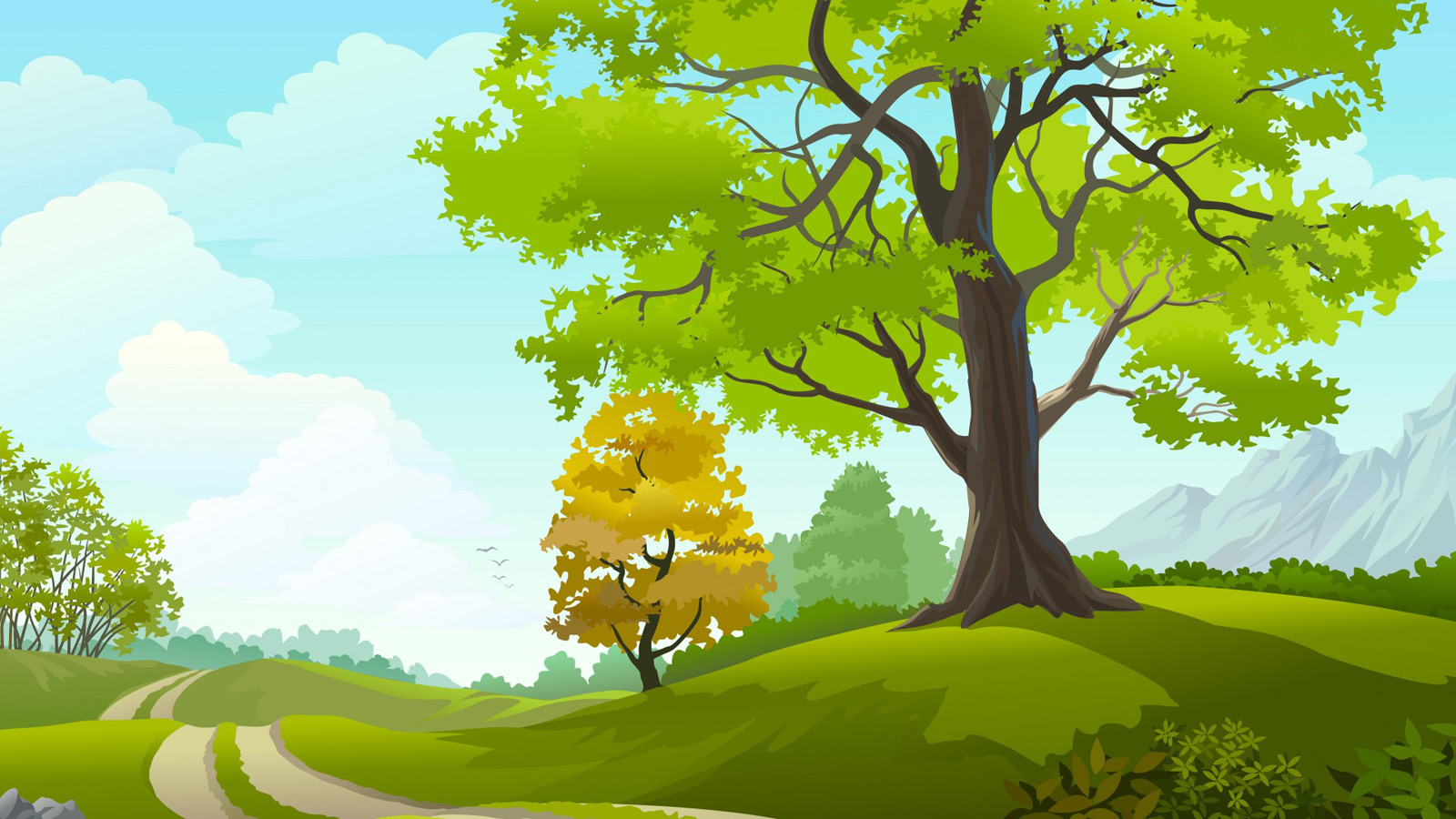 自然,树木,草地,风景,天空,云,道路,矢量绘画风景壁纸