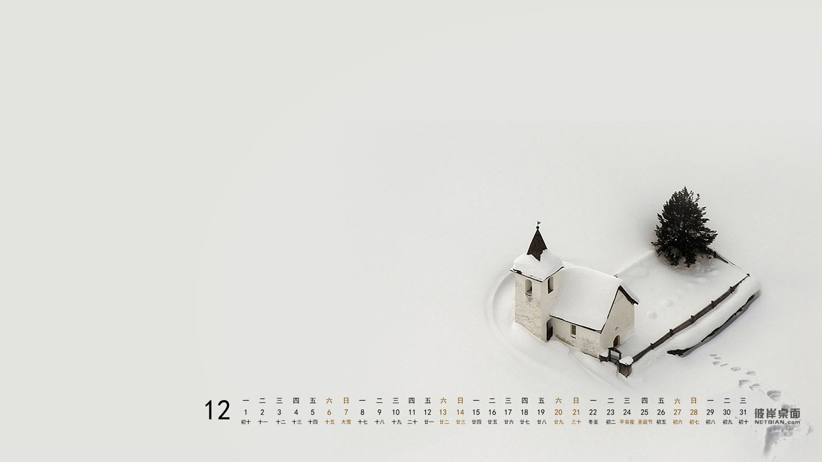 彼岸2014年12月日历桌面壁纸 2014全年日历壁纸